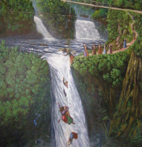 Μια σκέψη άστραψε τότε στο μυαλό των κυνηγημένων. Εκεί ήταν η σωτηρία. Εκεί θα έβρισκαν λύτρωση από τη σκλαβιά. Άρπαξαν τα παιδιά τους και θαρρετά προχώρησαν ως την άκρη του καταρράκτη και πήδησαν μέσα κρατώντας τα. Μια… δυο… τρεις… πέντε… είκοσι… τριάντα… κι άλλες κι άλλες… Έτσι δεν θα ζούσαν σε χαρέμια αγάδων κι ούτε τα παιδιά τους θα μεγάλωναν σκλάβοι.