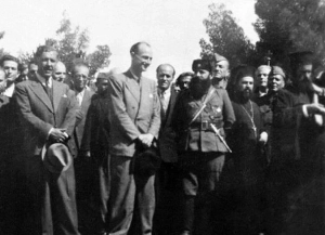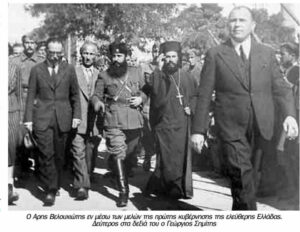 Ο Άρης με τον στρατηγό Σαράφη, αριστερά. Στο βάθος εικονίζεται ο Κωστούλας Αγραφιώτης