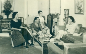 Η οικογένεια που ποτέ δεν γνώρισε ο βασιλιάς Αλέξανδρος. Δεξιά με το άσπρο φόρεμα, η πριγκίπισσα Ασπασία. Καθιστή απέναντί της, η κόρη της, πριγκίπισσα Αλεξάνδρα, βασίλισσα της Γιουγκοσλαβίας μετά τον γάμο της, που γεννήθηκε στις 25-3-1921 στην Αθήνα. Στις 20-3-1944 παντρεύτηκε στο Λονδίνο, τον βασιλιά της Γιουγκοσλαβίας Πέτρο Β΄, που κάθεται δίπλα της στην φωτογραφία. Πίσω από τον βασιλιά Πέτρο, ο γιος και μοναδικό παιδί τους, ο διάδοχος Αλέξανδρος της Γιουγκοσλαβίας (σήμερα Σερβίας), που γεννήθηκε στο Λονδίνο στις 27-6-1945.
