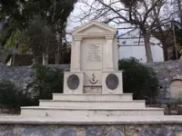 Επιτύμβια στήλη νεκρών στις Αλώνες. Κάτω δεξιά ανάγλυφο το προσωπο του.