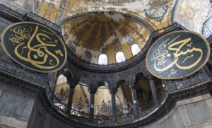 Όμως δε διστάζουν, πλησιάζει ό ένας τον άλλο, γίνονται «ένα σώμα», μια γροθιά και προχωρούν προς την έξοδο.Οί Τούρκοι είναι έτοιμοι να τους επιτεθούν, όταν ένας Τούρκος αξιωματούχος παρουσιάζεται με την ακολουθία του και τους λέει: «Ντουρούν χέμεν» (αφήστε τους να περάσουν). Το είπε με μίσος. Θα ήθελε να βάψει τα χέρια του στο αίμα τους, όμως εκείνη τη στιγμή έτσι έπρεπε να γίνει, αυτό επέβαλαν τα συμφέροντα της πατρίδας του, δεν ήταν χρήσιμο γι’ αυτούς να σκοτώσουν τώρα πέντε Έλληνες αξιωματικούς μέσα στην άγια Σοφιά. Δεν ξεχνά ότι στ’ ανοιχτά της Πόλης βρίσκονται δυο ετοιμοπόλεμες Ελληνικές Μεραρχίες κι ακόμη ότι ή Κωνσταντινούπολη βρίσκεται ουσιαστικά υπό την επικυριαρχία των νικητών του Α’ Παγκοσμίου Πολέμου στους οποίους βέβαια δεν συμπεριλαμβάνονται οι Τούρκοι.
